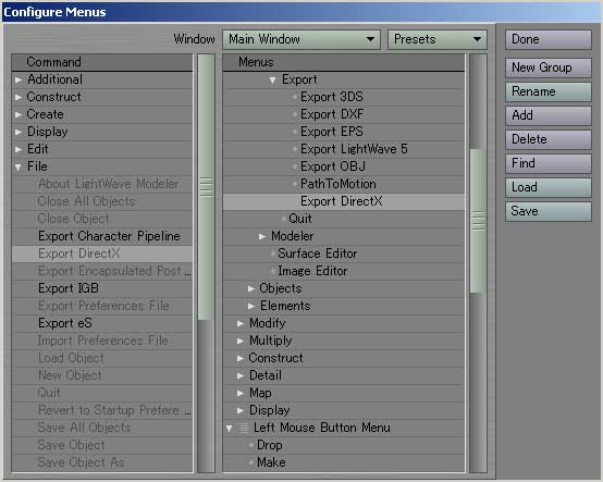 | Export DirectX | (Modeler/CommandSequnce) |
